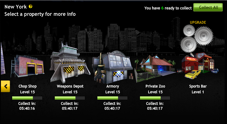 Se agrego la primera de tres nuevas propiedades en New York se llama Sports Bar, tenemos 7 días para llevarla a nivel 10, después de que se finalize el tiempo no sera posible actualizarla.